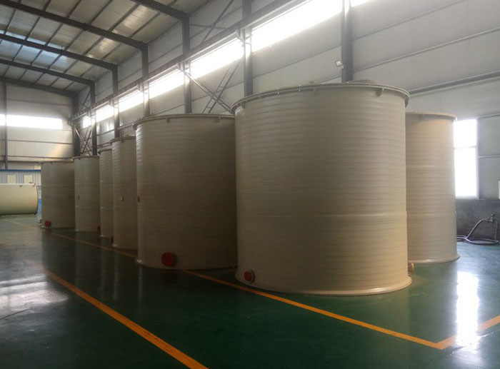1、采用预埋地脚螺栓的方式,在牢固的基础上对聚丙烯储罐进行水平安装。