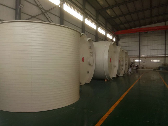 3、进入PP反应釜应穿洁净胶鞋入内察看玻璃衬里是否完好,法兰及接管部位紧固,以免因局部受力过大,导致搪玻璃表面的损坏。
